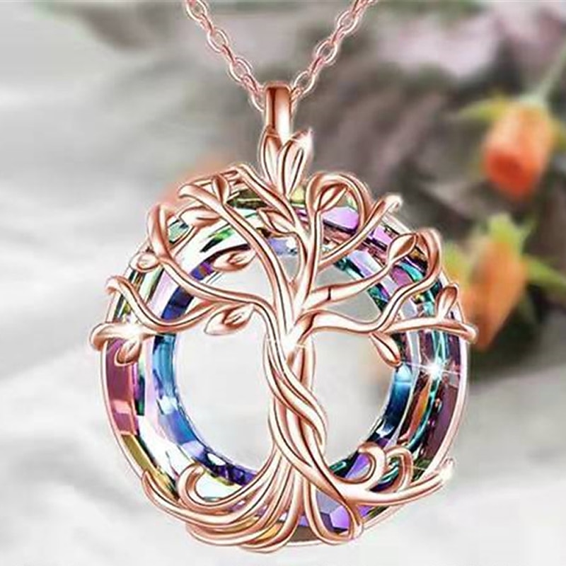 Highlights [Fabric] : Crafted from premium alloy, this necklace exudes elegance with its durable and high-quality material, ensuring long-lasting wear. The pendant, with its delicate design, is enhanced by a multicolored backdrop possibly made from radiant iridescent glass or crystal. [Design Highlights] : The necklace showcases a stunning circular pendant in gold, silver, and rose gold options. The centerpiece of the design is a finely detailed tree of life motif, symbolizing strength and growth. This intricate design reflects sophistication and meaningful symbolism. The finely crafted chain complements the pendant, adding to the piece's overall chic and modern appeal. [Occasions] : Ideal for a wide range of occasions, this necklace is perfect for daily wear, street style, or holiday gatherings. Its versatile design seamlessly complements both casual and elegant outfits, making it suitable for any outing, whether it's a relaxed weekend or a special celebration. [Style] : This chic and modern necklace combines vintage and contemporary aesthetics. The blend of fashion-forward design with a touch of vintage charm makes it a statement piece for those who appreciate exclusive and meaningful jewelry. [Size] : Designed in a one-size-fits-all configuration, this necklace effortlessly adapts to individual styles and preferences. Available in gold, silver, and rose gold colors, it offers versatility and variety to match different looks and tastes. Perfect for everyday use. supreme materials and excellent craftsmanship ensure long-lasting durability.