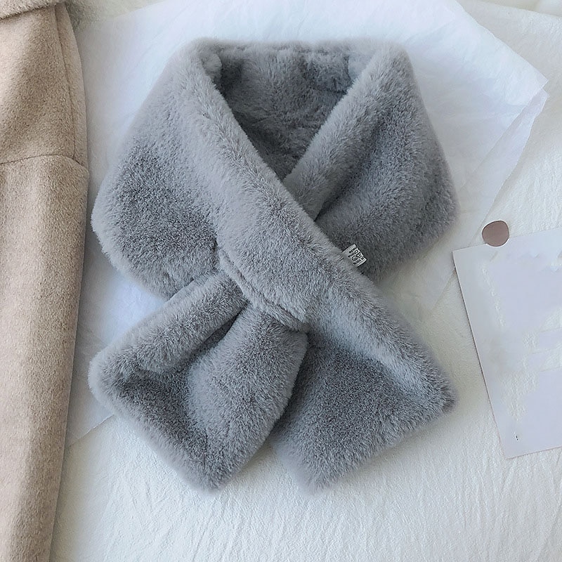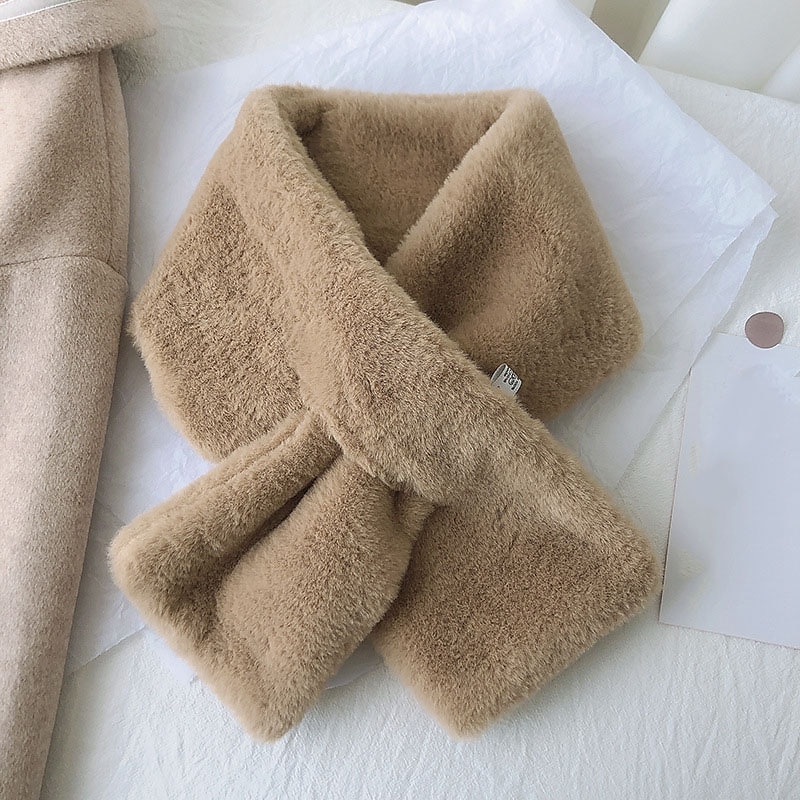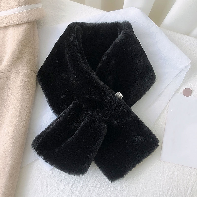 Women Winter Warm Thicken Scarfs Solid Color Faux Fur Plush Cross Collar Scarf Elegant Warm Fashion Accessories 1