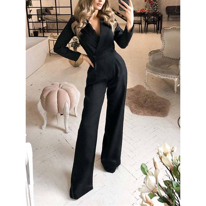 must-have ! Women's Jumpsuit for Special Occasions Pocket High Waist Solid Color V Neck Streetwear Office Work Regular Fit Long Sleeve Black White Wine S M L Summer