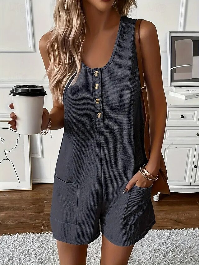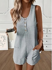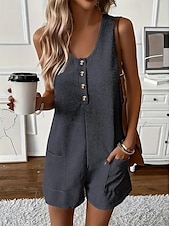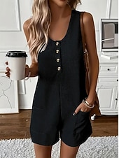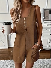 must-have ! Women's Normal Romper Casual Solid Color Sleeveless Baggy Shorts Crew Neck Buttons Pocket Sport Daily Regular Fit Black Army Green Brown Summer