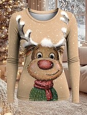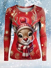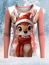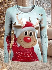 More information about Christmas Women's T Shirt Graphic Reindeer Vintage Fashion chic Long Sleeve Crew Neck Regular Tops Daily Weekend Print Pink Red Blue Khaki Spring Fall Winter