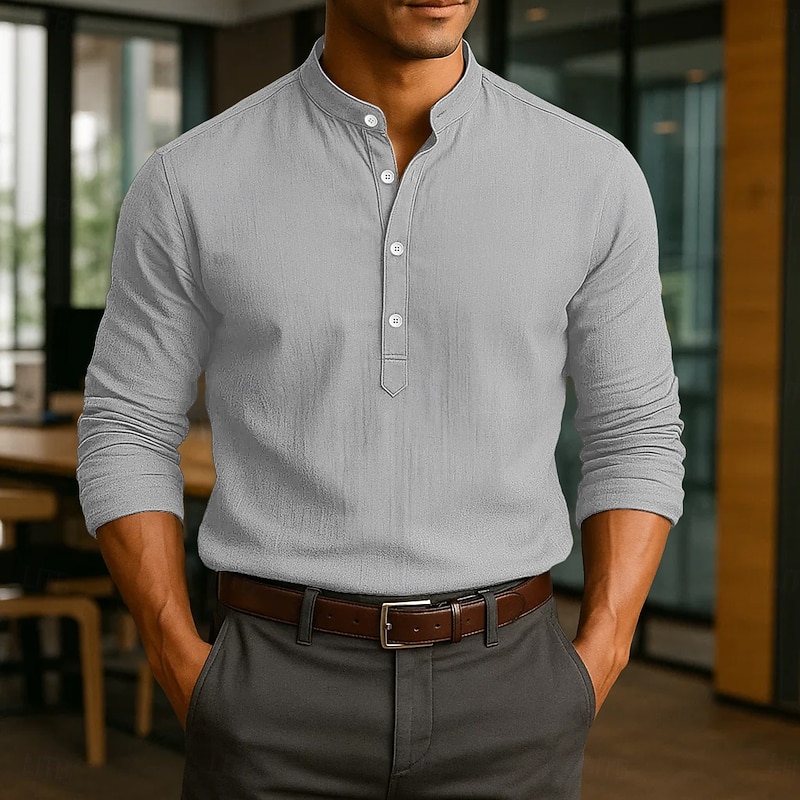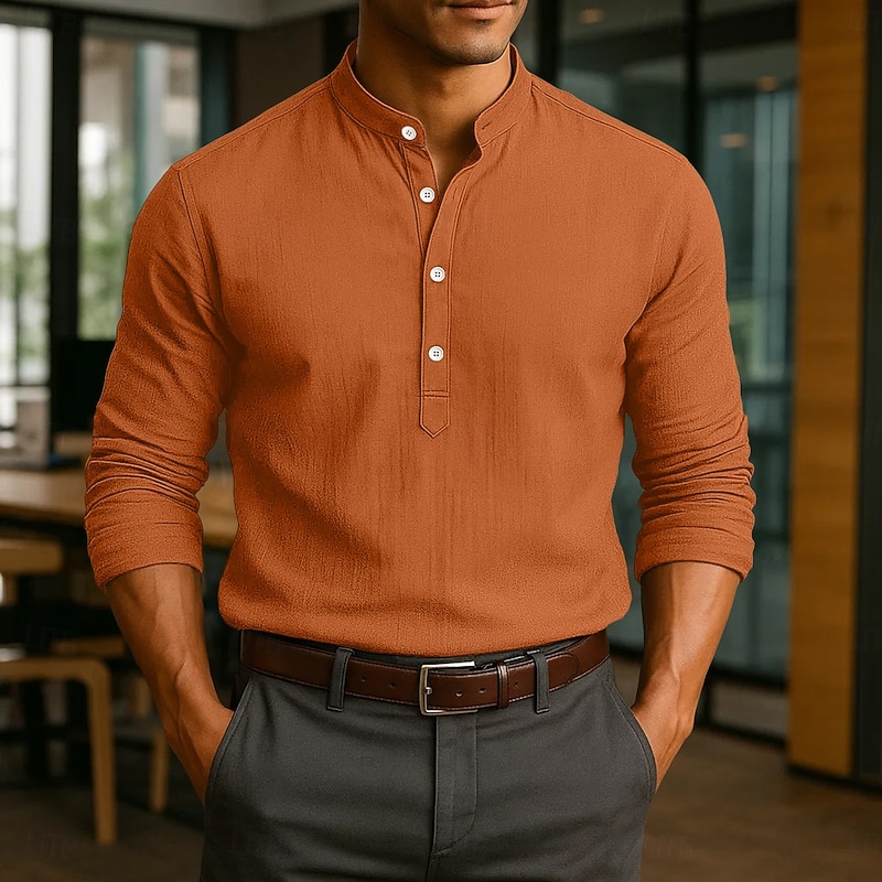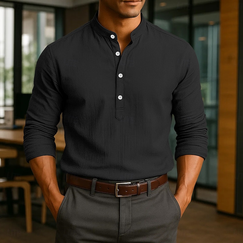 This Men's Linen Shirt Popover Shirt Dress Shirt Casual Shirt Beach Shirt Band Collar Shirt Plain Vacation Casual Black White Pink Blue Long Sleeve Band Collar Spring & Summer All Seasons Clothing Apparel combines elegant design with practical functionality. Every detail has been carefully considered to ensure you get the top possible experience. The top-grade construction means this product will serve you well for years to come.