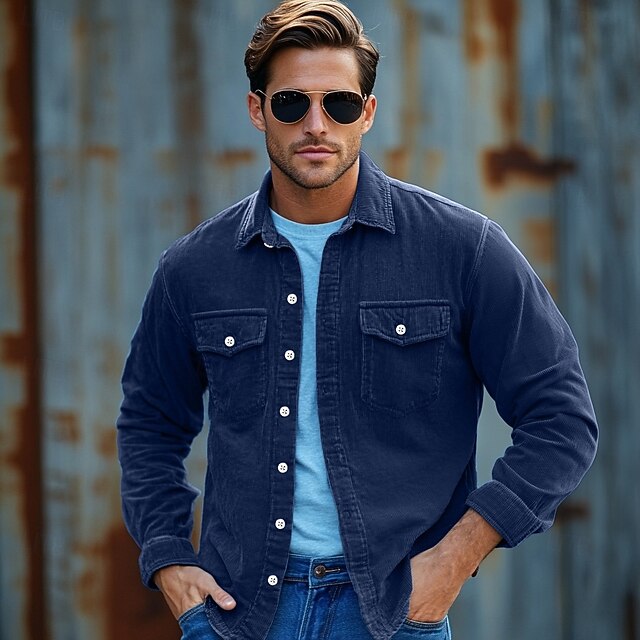 More information about Men's Shirt Button Up Shirt Casual Shirt Corduroy Shirt Black Dark Navy Beige Long Sleeve Plain Collar Daily Vacation Clothing Apparel Fashion Casual