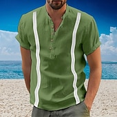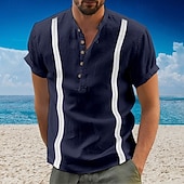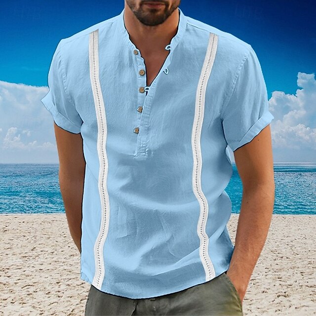 More information about Men's Shirt Popover Shirt Summer Shirt Casual Shirt Beach Shirt Button Up Shirt White Navy Blue Blue Green Short Sleeve Boho Paisley Damask Band Collar Henley Vacation Hawaiian Buckle Clothing Apparel