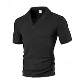 More information about Men's Shirt Summer Shirt Casual Shirt Beach Shirt Button Up Shirt Black White Navy Blue Sky Blue khaki Short Sleeve Vertical Stripes Lapel Vacation Casual Clothing Apparel Fashion Casual silky