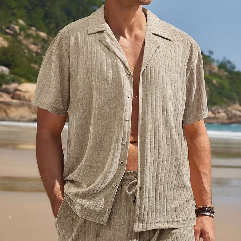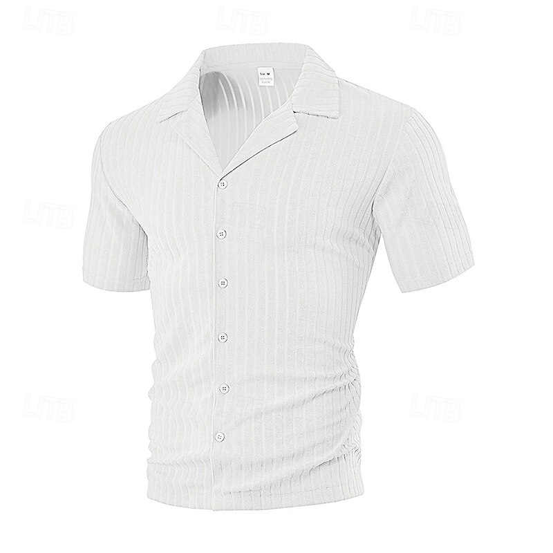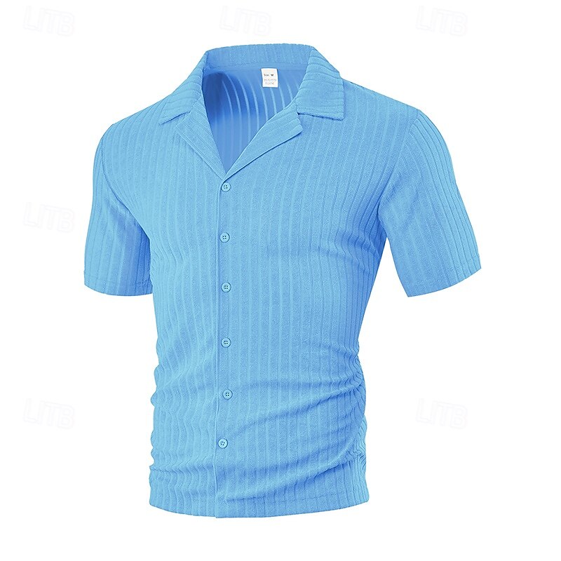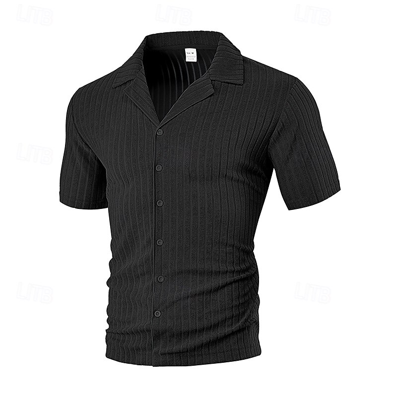 must-have ! Men's Shirt Summer Shirt Casual Shirt Beach Shirt Button Up Shirt Black White Navy Blue Sky Blue khaki Short Sleeve Vertical Stripes Lapel Vacation Casual Clothing Apparel Fashion Casual plush