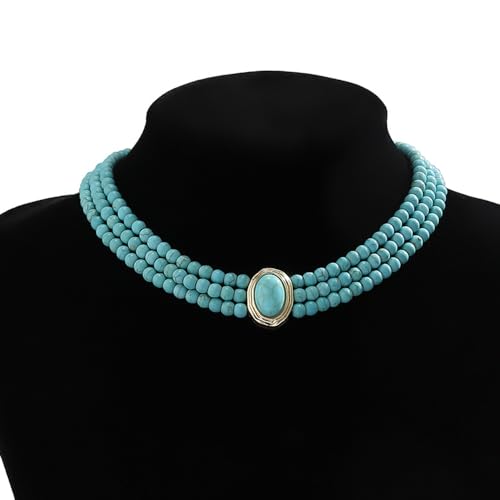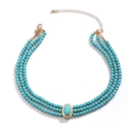 Why Choose Octwine Boho Round Imitation Turquoise Layered Choker Necklace Multi Strands Vintage Choker 1920s Bridal Wedding Christmas Vintage Shiny Necklace for Women?