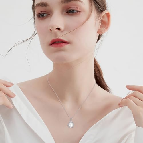 POPLYKE Pearl Moonstone Opal Black Pearl Necklaces for Women 925 Sterling Silver Single Pearl Necklace 8mm Pearl Gemstone Jewelry for Mom Wife 3
