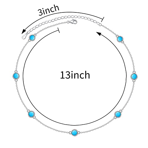 • Turquoise Choker Necklace:7 clean blue bezel-set turquoise is of 4mm diameter,trendy necklace with lovely color for you to wear day and night and faultless to layered with other silver pendant necklace.Simple choker is easy to match,versatile for any season and occasion