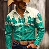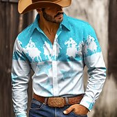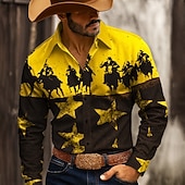 must-have ! Men's Stars Cowboy Riding Horse Shirt Western Shirt Button Up Shirt Long Sleeve Vintage Retro Outdoor Casual WorkWear Spring Fall Turndown 3D Print Collared Shirts Yellow Blue Orange Apricot