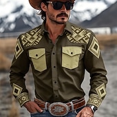 Why Choose Men's Geometric Aztec Ethnic Western Shirt Button Up Shirt Cowboy Shirt Long Sleeve Vintage Retro Outdoor Daily WorkWear Fall & Winter Turndown 3D Print Front Two Pockets Linen enjoy Shirt Army Green?