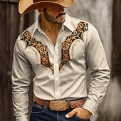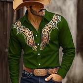 More information about Men's Floral Print Shirt Button Up Shirt Cowboy Shirt Long Sleeve Western Style Outdoor Casual WorkWear Spring Fall Turndown 3D Print Collared Shirts Blue Green Beige