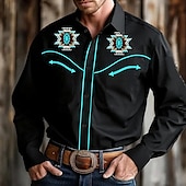 must-have ! Men's Ethnic Western Shirt Long Sleeve Western Sports Outdoor Spring Fall Turndown Button Up Black