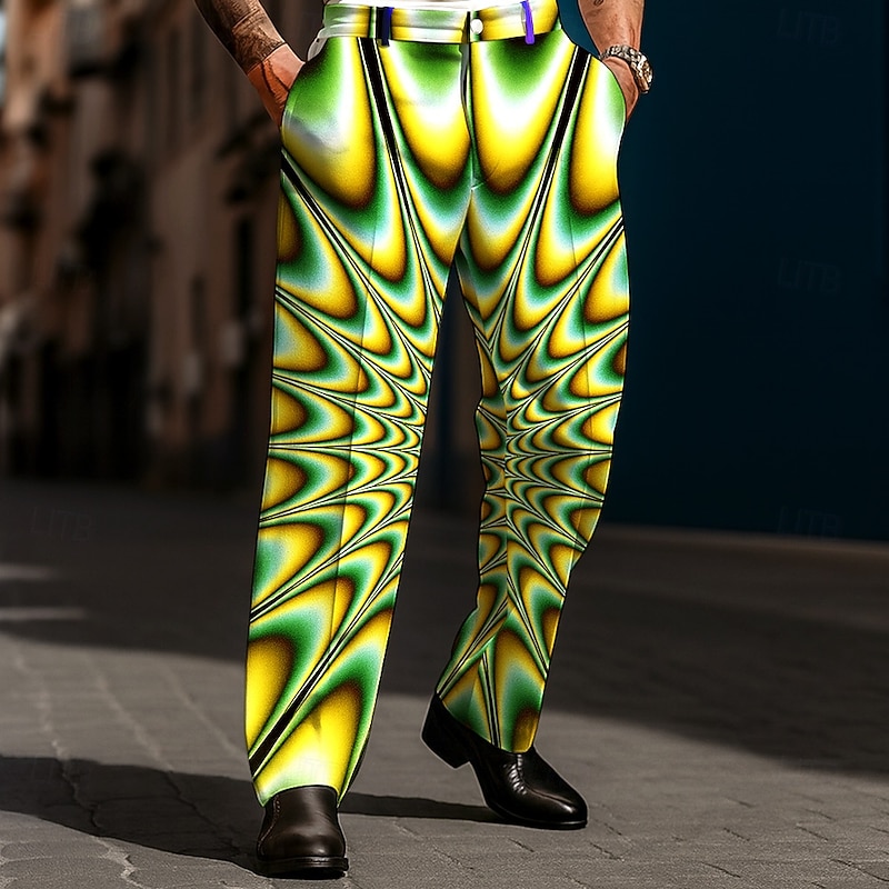 Why Choose Men's Geometric Optical Illusion Laser Trousers Dress Pants Suit Pants Mid Waist Casual Holiday Streetwear Relaxed Fit Flat Front Dress Pants with Side Pockets Spring Fall 3D Print White Red Blue?