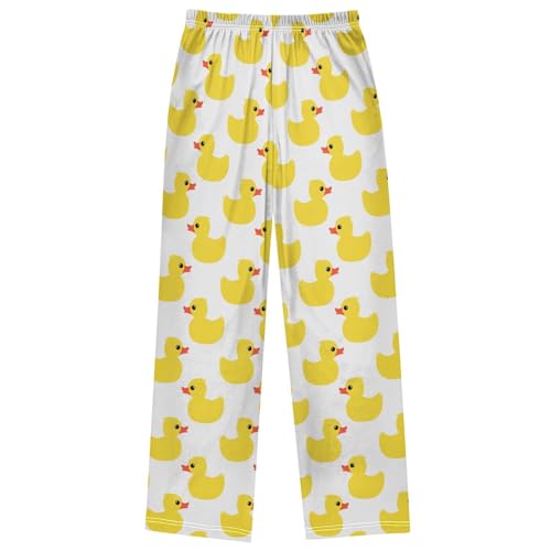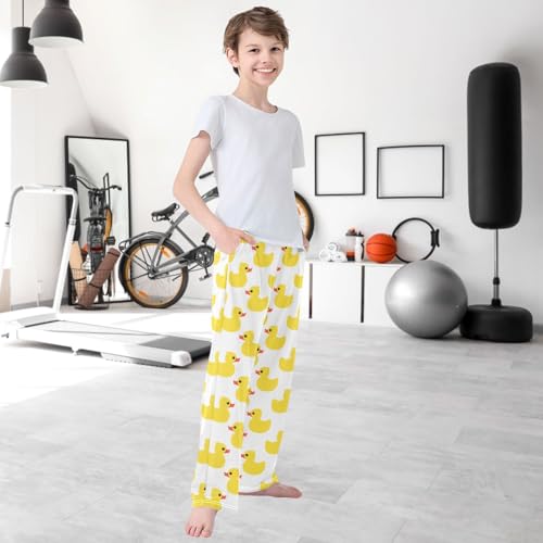 Boy's Pants Yellow Rubber Duck White Jogger Pants Elastic Waist Long Bottoms Trousers with Pockets 6-14 Years