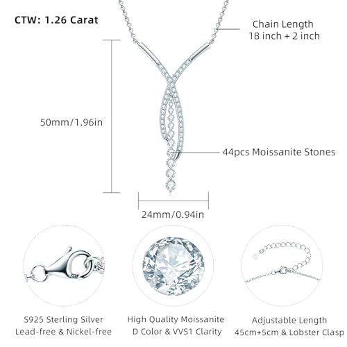 AINUOSHI Lab Created Moisanite Statement Necklace for Women CTW 1.26 Carat Fashion Crossover Design Drop Pendant with 18+2 inch S925 Sterling Silver Chain