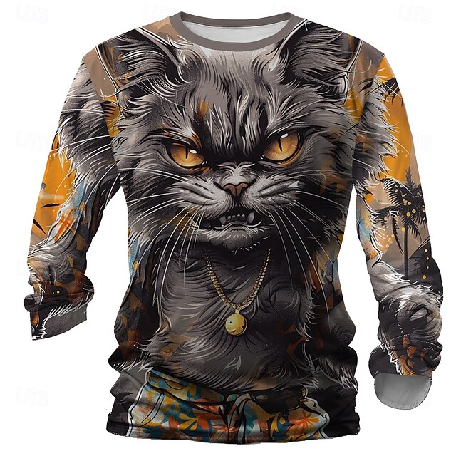 This Men's Cat Funny T Shirt Long Sleeve T shirt 3D Print Crew Neck Shirt Designer Retro Vintage Street Casual Daily Yellow Red Blue Summer Spring Fall Clothing Apparel S M L XL XXL XXXL combines elegant design with practical functionality. Every detail has been carefully considered to ensure you get the top possible experience. The top-grade construction means this product will serve you well for years to come.