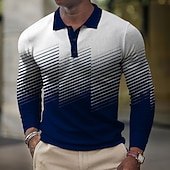 Highlights [Fabric] : The Men's Geometric Waffle Polo Shirt is crafted from a high-quality polyester blend, offering a smooth, lightweight fabric that's both comfortable and breathable. Ideal for spring, fall, and winter, this shirt is designed for all-day wearability. [Fit] : Featuring a slim-fit cut, this long-sleeve polo shirt provides a new-age and tailored silhouette. The micro-elastic fabric ensures a snug yet comfortable fit that enhances your physique, while the thin material adds to its versatility. [Design Highlights] : The shirt boasts a contemporary gradient design, transitioning from white to deep navy blue, complemented by a geometric 3D print. The classic collar with a three-button placket adds to its timeless appeal. Diagonal stripes contribute to a dynamic and sophisticated look, perfect for fashion-forward individuals. [Occasions] : This polo shirt is versatile enough for various occasions, including vacations, formal events, and festivals. Whether you're dressing up for a semi-formal gathering or enjoying a casual day out, this shirt fits seamlessly into any setting. [Size Range] : Available in a range of sizes from S to XXXL, ensuring the right fit for adult men across different body types. Perfect for everyday use. first-class materials and excellent craftsmanship ensure long-lasting durability.