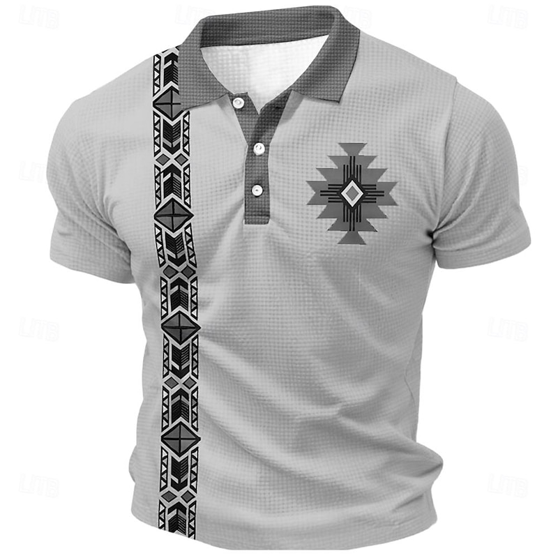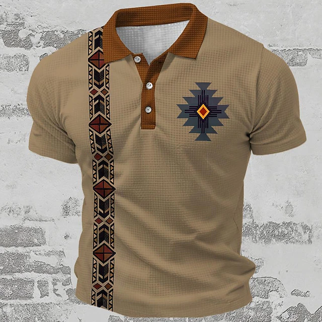 Why Choose Men's Tribal Waffle Polo Shirts Golf Shirt Short Sleeve Polo Shirts Collared Shirts Vintage Casual Vacation Wear Party Outfits Buttons 3D Print Summer Spring Blue Green Khaki?