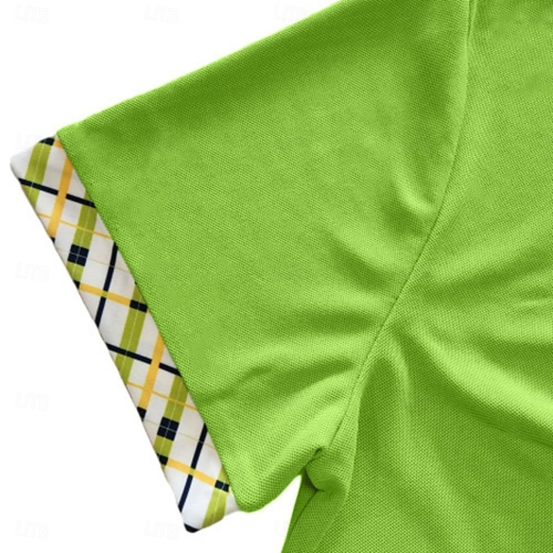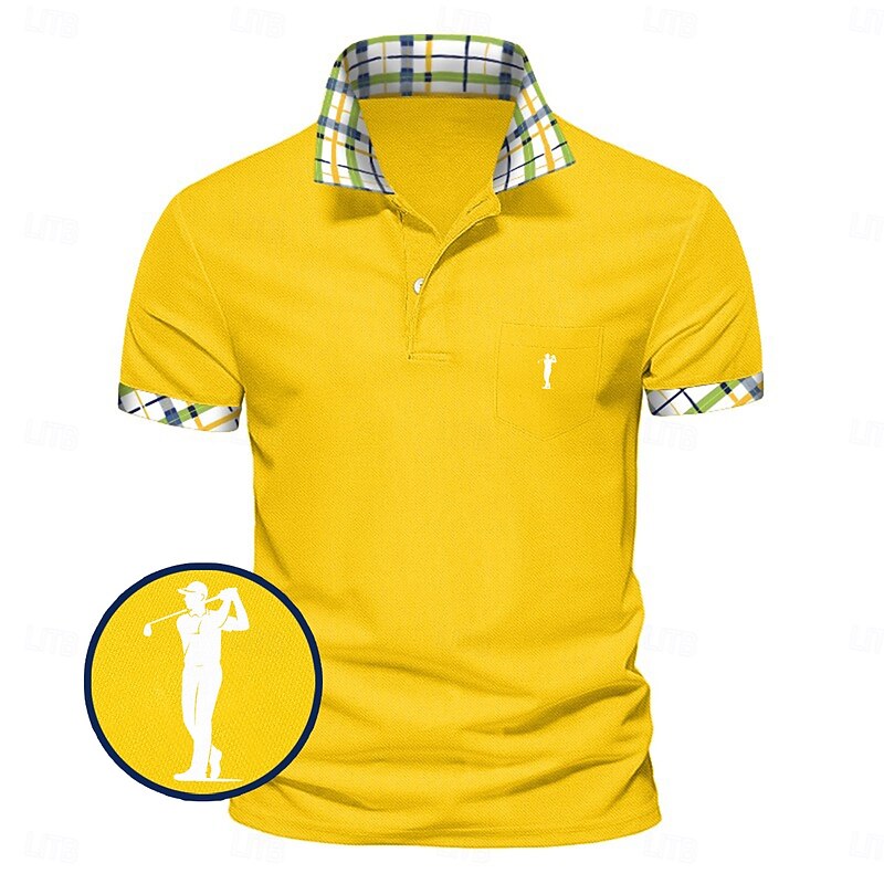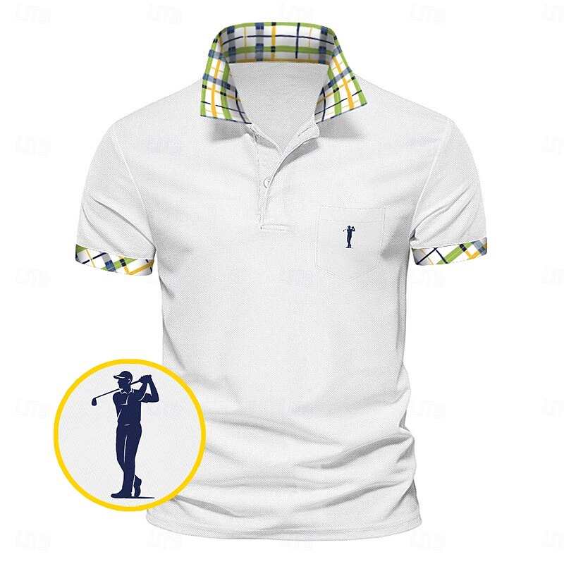 More information about Men's Golf Shirt Pique Polo Shirt Business Casual Turndown Short Sleeve Fashion Basic Solid Color Plaid Buttons Logo Summer Spring Spring & Fall Regular Fit White Yellow Navy Blue Green Golf Shirt