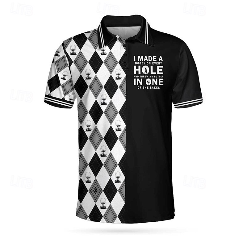 More information about Men's Plaid Sports Polo Shirts Golf Shirt Short Sleeve Polo Shirts Collared Shirts Casual Sportswear Vacation Wear Buttons 3D Print Black Royal Blue Blue