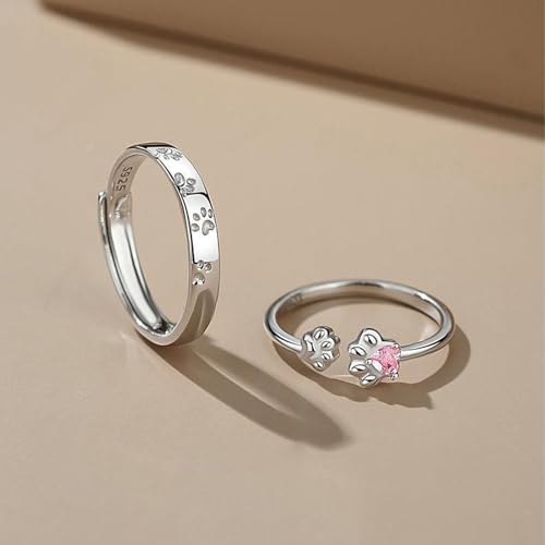 Silver Plated Couple Rings Set Simple Cubic Zirconia Matching Promise Rings for Him and Her Adjustable Engagement Wedding Finger Jewelry for Women Men Birthday Gifts 6