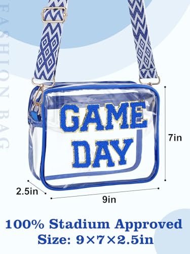 Fabric type: PVCOrigin: ImportedClosure type: ZipperLining: Polyvinyl ChlorideClear Bag Stadium Approved: Our clear bag for stadium events measures 9 x 7 x 2.5 inches, perfectly within stadium regulations. The fully transparent PVC design enables faster and hassle-free security checks, allowing you to skip the stress and head straight to the game or concertGame Day Style: Designed with a bold GAME DAY letter patch and outlined with vibrant black or blue trim, this clear stadium bag adds a fun, sporty vibe to your outfit. The sleek design pairs effortlessly with jerseys, casual wear, or concert looks—offering a fashionable yet functional lookComfortable Carry Options: The clear purse features an adjustable shoulder strap (20.5–39.5) that allows you to wear it cross-body or over the shoulder. Spacious enough to fit your phone, wallet, keys, lip gloss, and sunglasses—keeping your essentials secure while leaving your hands free for cheeringDurable & Waterproof: Crafted from high-quality, waterproof PVC, the clear stadium bags for women resist tearing and protect belongings from rain or spills. Smooth zippers and reinforced stitching ensure reliable daily use—no more worries about broken seams or flimsy qualityPerfect for Every Event: Whether it’s stadium events, concerts, music festivals, or any outdoor event, this clear crossbody concert bag is your go-to companion. trendy, practical, and compliant with venue rules—never worry about being turned away at security again Perfect for everyday use. first-class materials and excellent craftsmanship ensure long-lasting durability.
