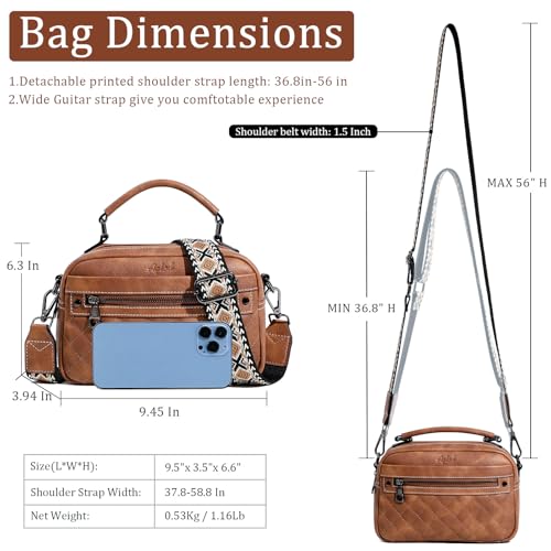 • 【Lightweight & Wide Guitar Strap】This purses for women crossbody bag is 9.5"(L) x 3.5"(W) x 6.6"(H) in size. Weight: 0.53Kg/1.16Lb. The length of the shoulder strap can be adjusted to 37.8-58.8 In, and the width of the shoulder strap is 1.5in. This adjustable straps long enough for any person”s height, and the appropriate body weight of bag prevent womens crossbody purse from flips upside down if you pick it up by the strap.