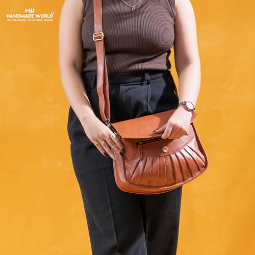 Handmade World NDM supple Leather Womens Flapover Crossbody The Grace with Adjustable Strap & Overflap Ladies Travel Purse