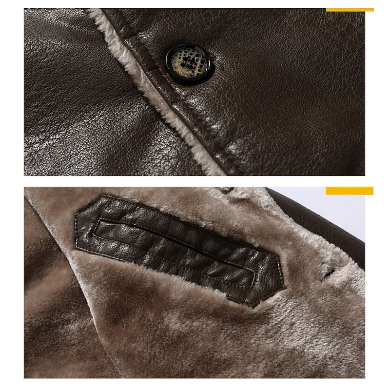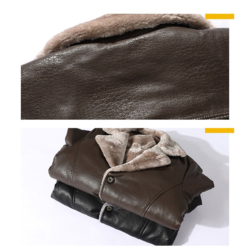 This Men's Faux Leather Jacket Winter Coat Shearling Coat Outdoor Street Thermal toasty Rain Waterproof Pocket Fall Winter Solid Color Active Business Turndown Regular Faux Leather Regular Fit Black Brown combines elegant design with practical functionality. Every detail has been carefully considered to ensure you get the best possible experience. The superior construction means this product will serve you well for years to come.