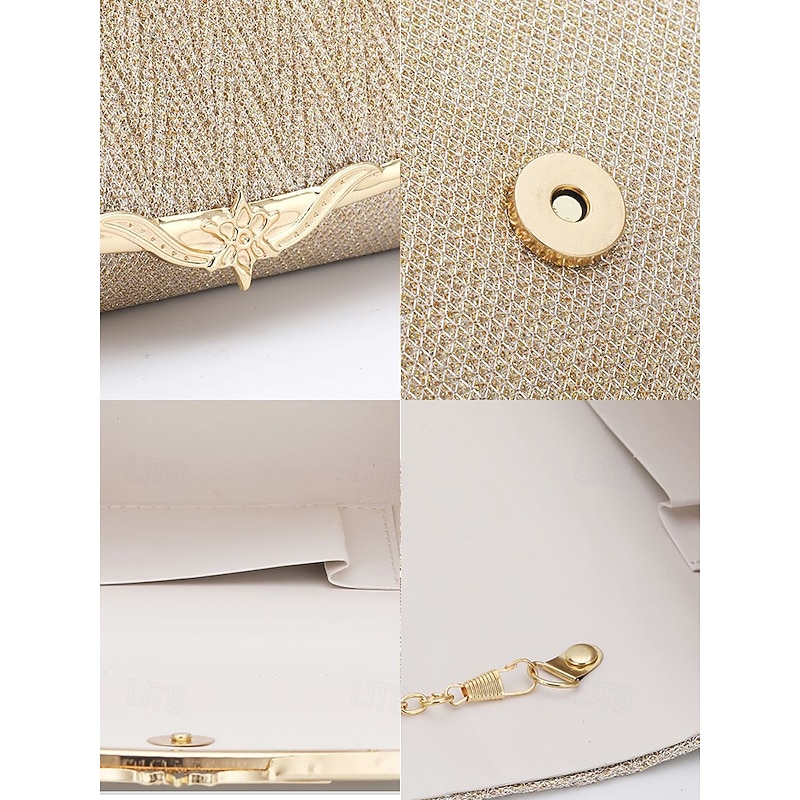 This Elegant Gold Glitter Evening Clutch - Women's Party Handbag with Chain Strap and Decorative Metal Accent for Weddings and Formal Events combines elegant design with practical functionality. Every detail has been carefully considered to ensure you get the foremost possible experience. The supreme construction means this product will serve you well for years to come.