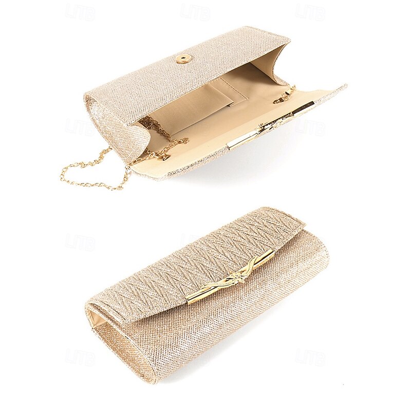 Why Choose Elegant Gold Glitter Evening Clutch - Women's Party Handbag with Chain Strap and Decorative Metal Accent for Weddings and Formal Events?
