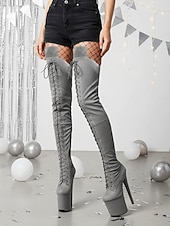More information about Women's Platform Over the Knee Lace-Up Boots - High Heel Pole Dance Thigh High Boots for Nightlife and Party Wear