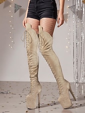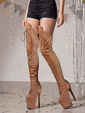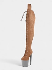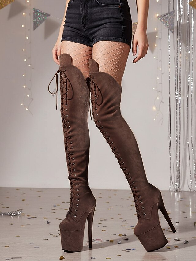must-have ! Women's Platform Over the Knee Lace-Up Boots - High Heel Pole Dance Thigh High Boots for Nightlife and Party Wear
