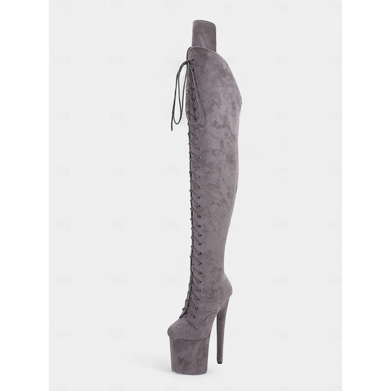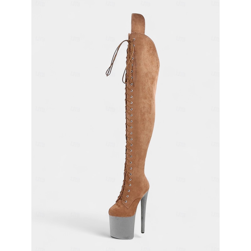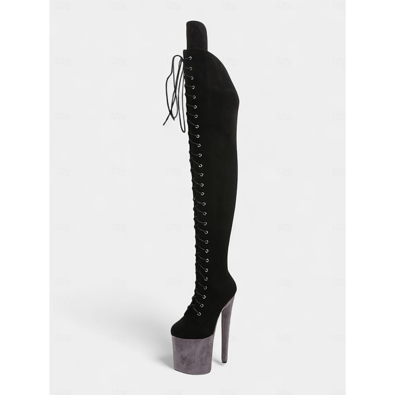 Women's Platform Over the Knee Lace-Up Boots - High Heel Pole Dance Thigh High Boots for Nightlife and Party Wear 7