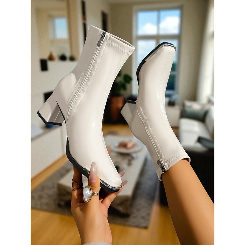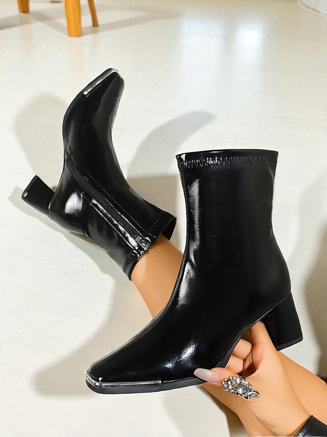 Why Choose Women's Black Patent Faux Leather Ankle Boots with Square Toe and Block Heels, up-to-date Chic Fashion Booties for Casual Outfits, Office Wear & Night Out?