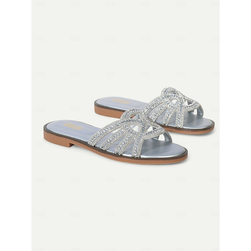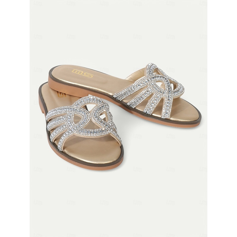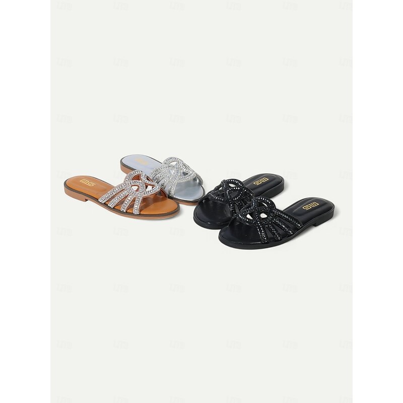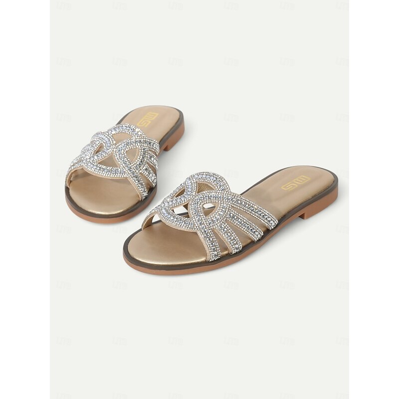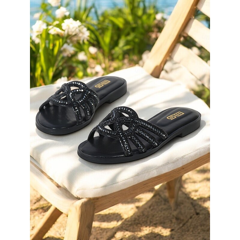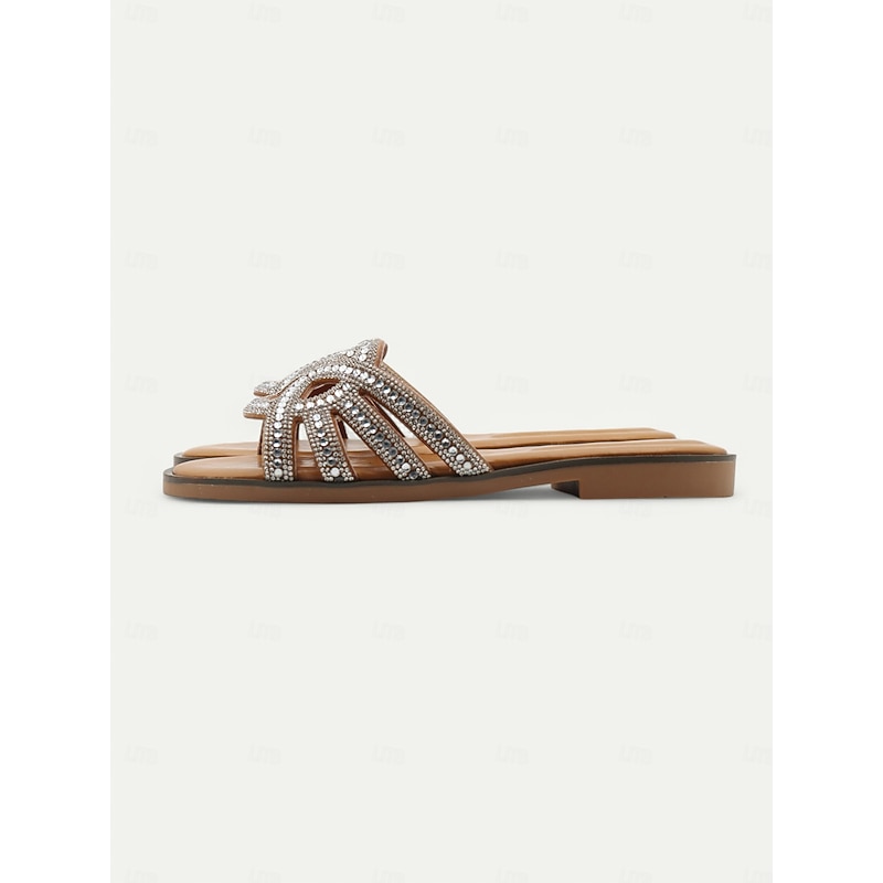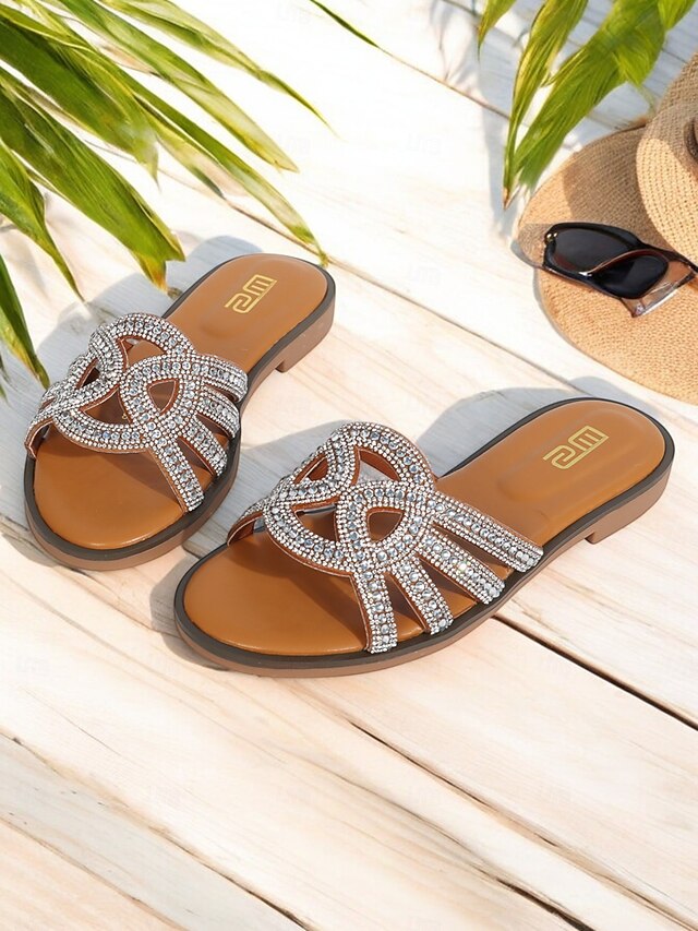 Why Choose Women's Brown Rhinestone Embellished Slide Sandals – Open-Toe Flat Slip-On Sandals for Summer Beach & Casual Wear?