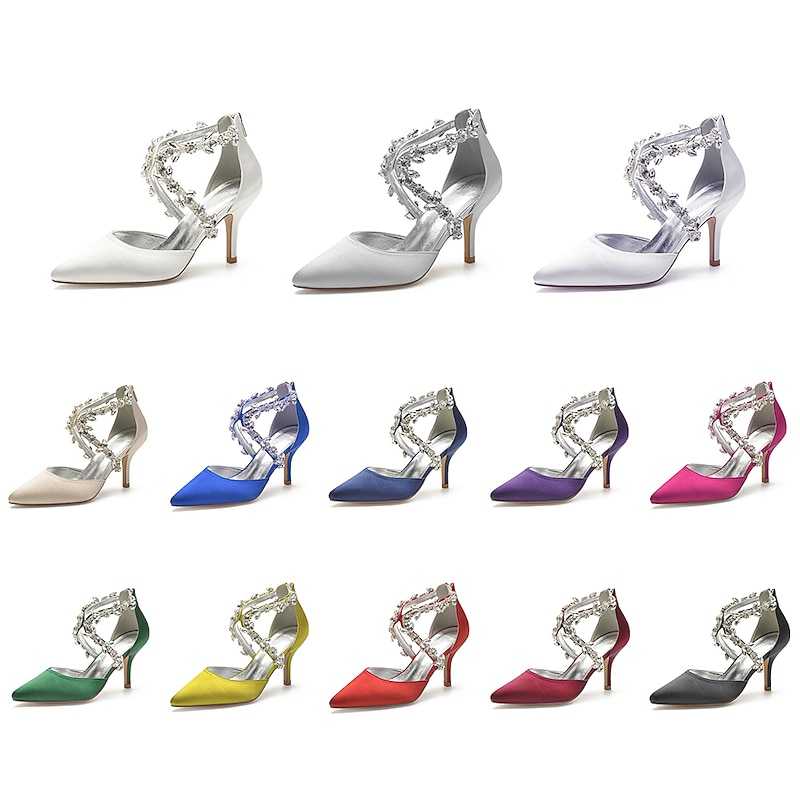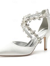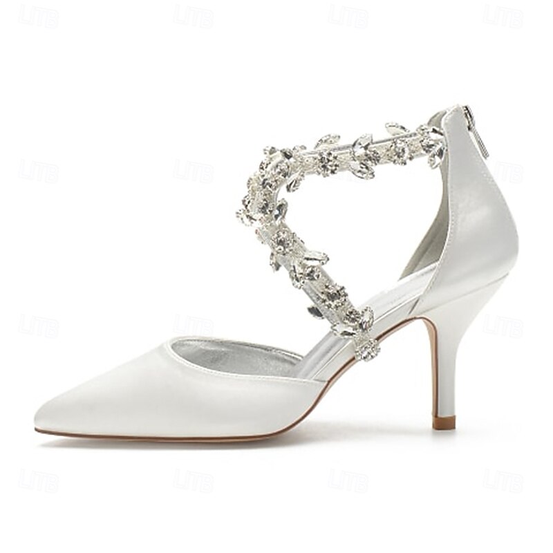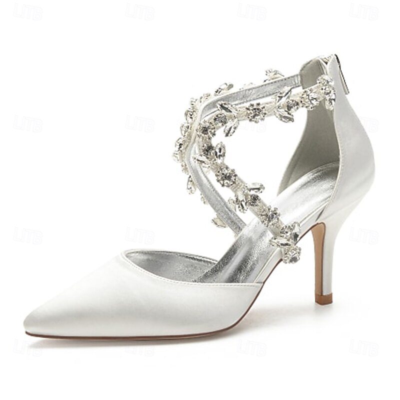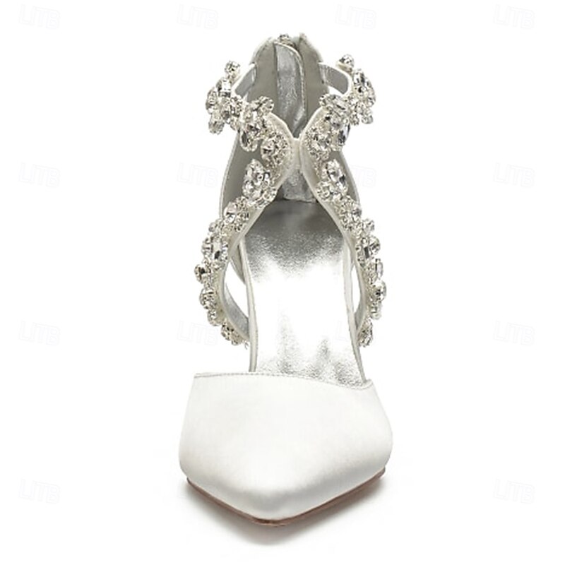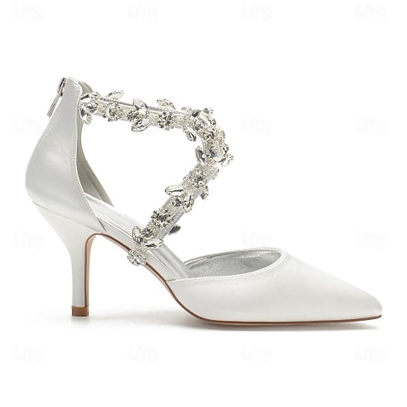 More information about Women's White Satin Crystal Strap Heels – Elegant Pointed Toe Cocktail Shoes for Weddings and Evening Parties