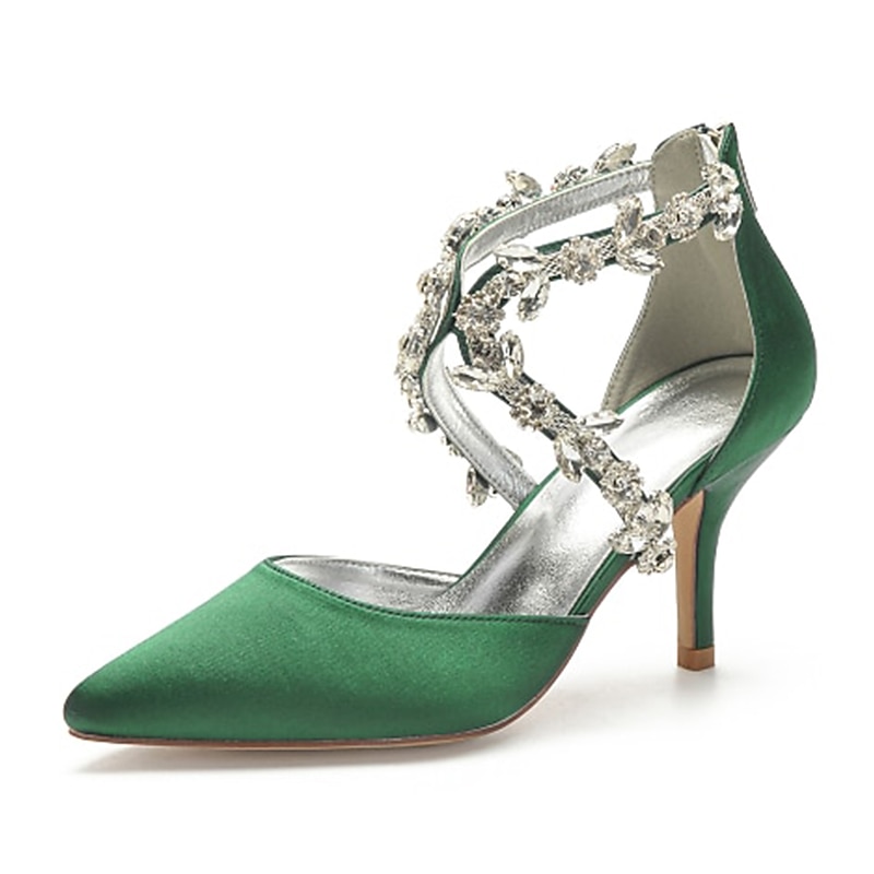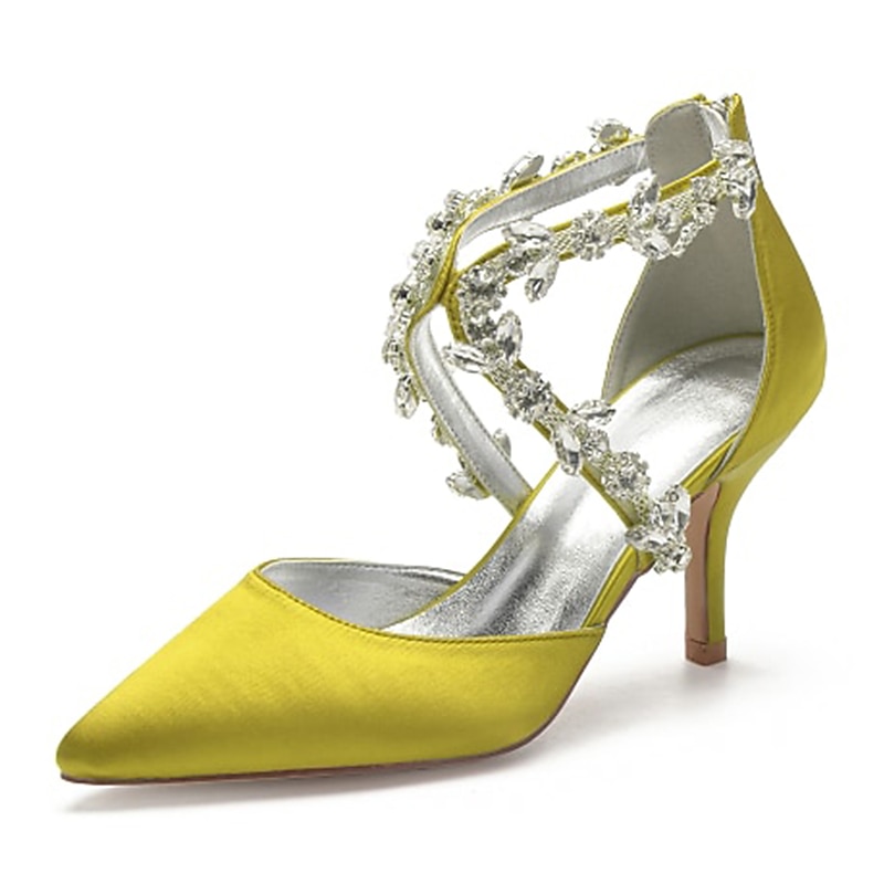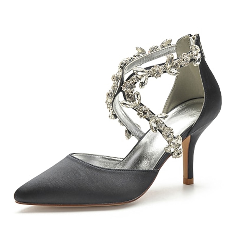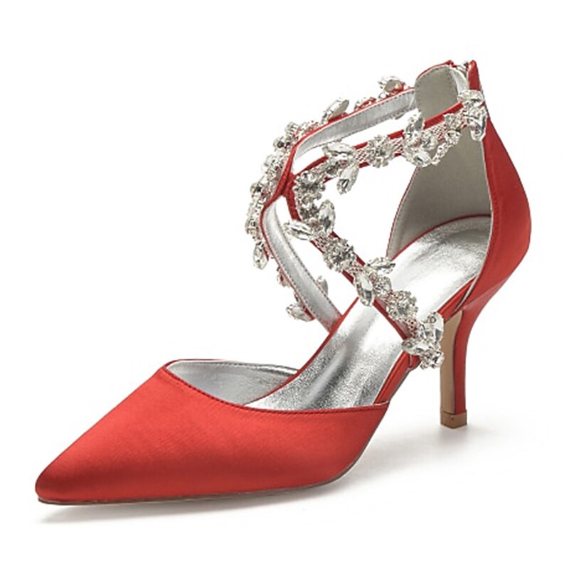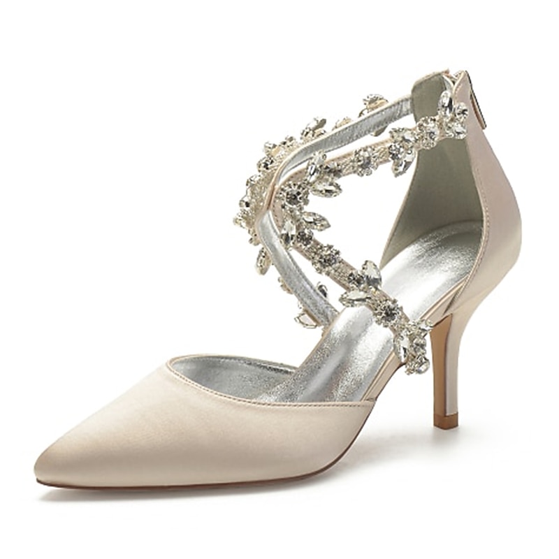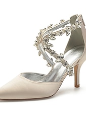 More information about Women's White Satin Crystal Strap Heels – Elegant Pointed Toe Cocktail Shoes for Weddings and Evening Parties