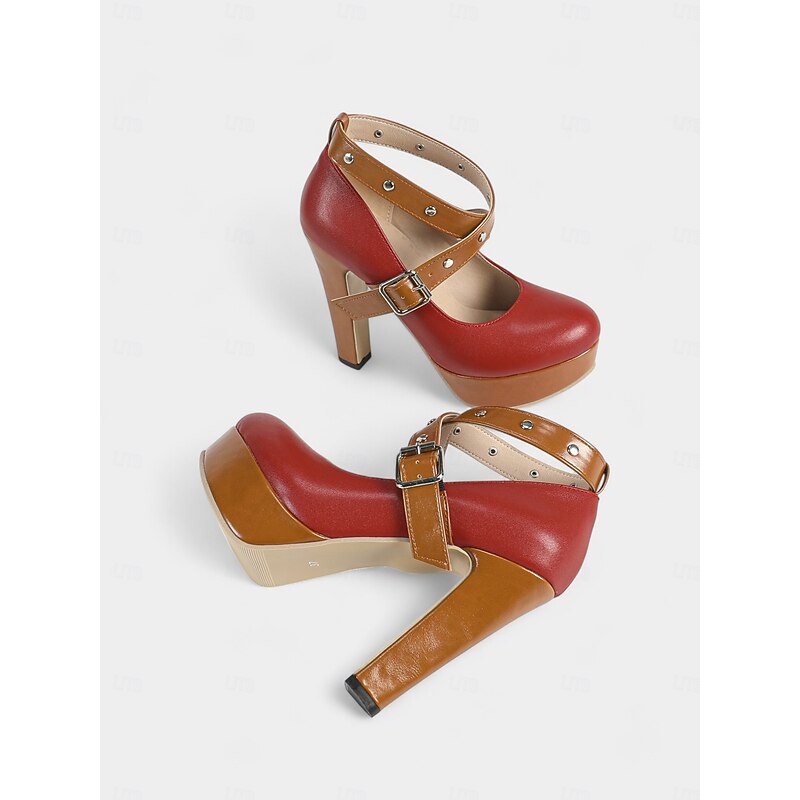 Why Choose Women's Black and Red Faux Leather Platform Heels – Crisscross Strap Buckle Pumps with Stud Details, 1980s Retro Rock Style High Heel Shoes for Fashion Events, Night Out and Stage Performances?