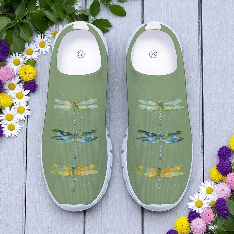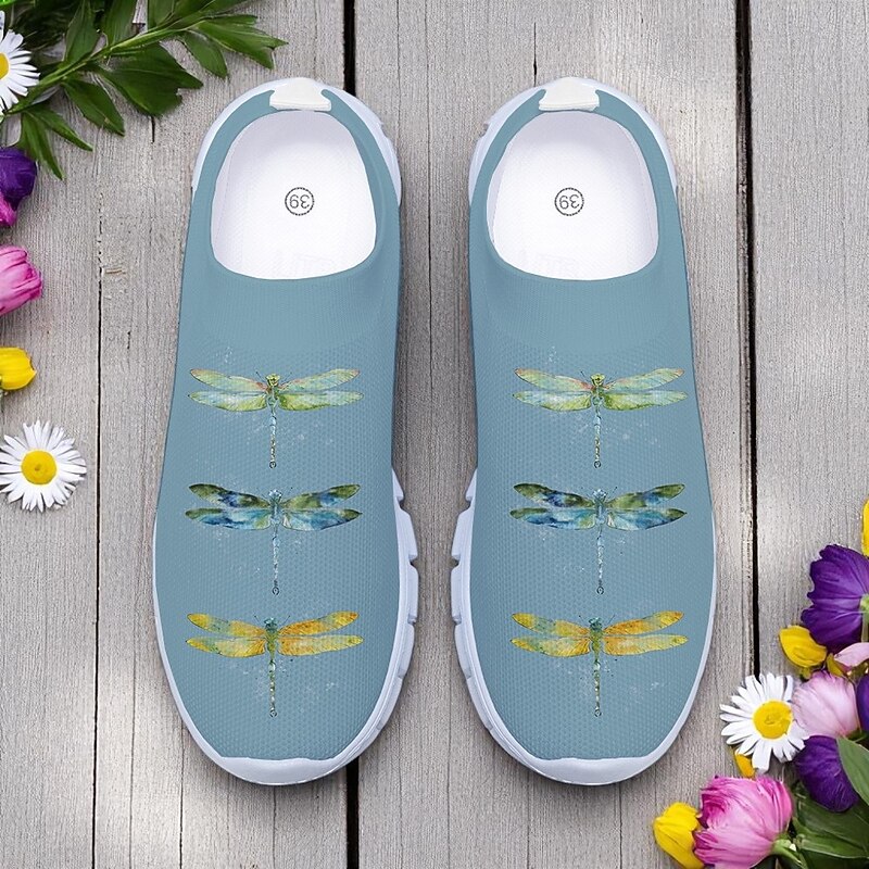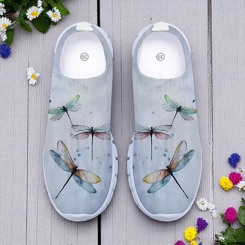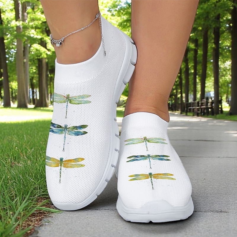 Why Choose Women's White Fly Knit Walking Shoes with Colorful Dragonfly Print – Lightweight Breathable Casual Slip-Ons for Outdoor Walks, Summer Travel and Everyday Wear?