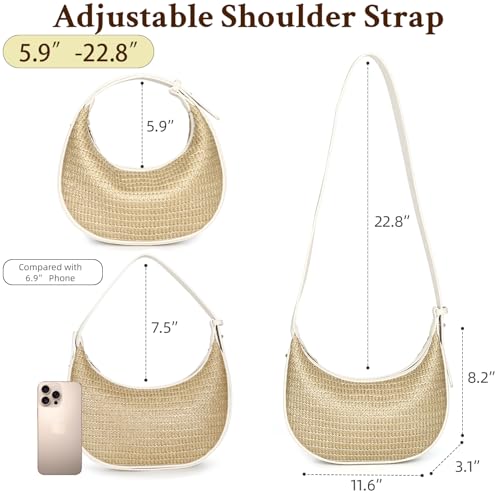 Herald Straw Crossbody Bag for Women Beach Woven Hobo Handbag Summer Chic Crescent Shoulder Purses with Adjustable Strap 4