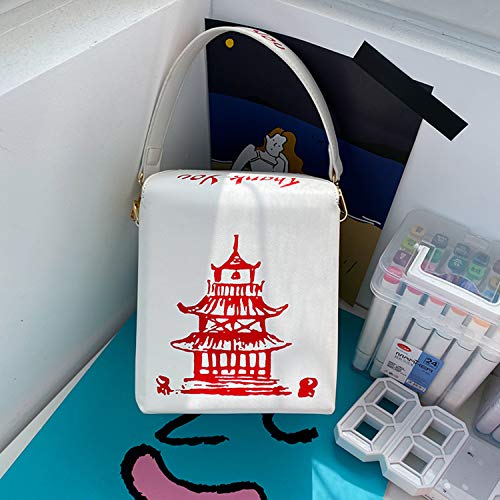 Oweisong Women Novelty Chinese Takeout Purse Tower Print Crossody Shoulder Bag Box Totes with relaxing Chain Strap