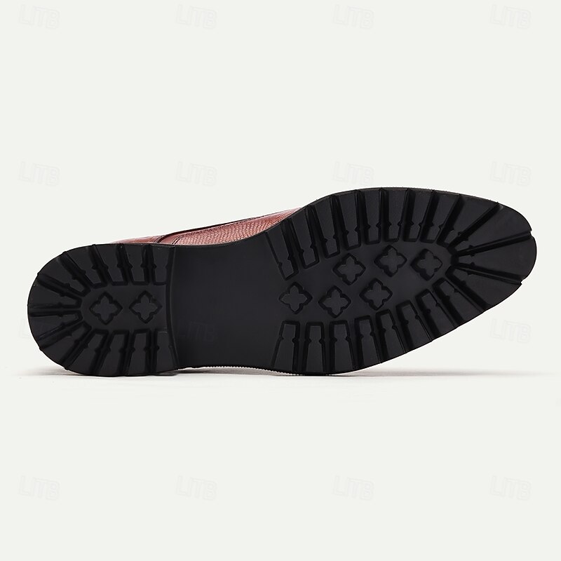 Men's Brown Leather Oxford Shoes with Crocodile Embossed Pattern - Rugged Sole and Classic Design for Formal and Casual Wear 5