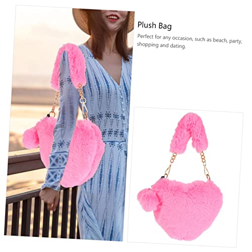 BESPORTBLE 1Pc Fluffy Plush Handbag Heart Shaped Bag for Women Cute Winter Casual Furry Purse Lightweight Portable for Daily Use present 1