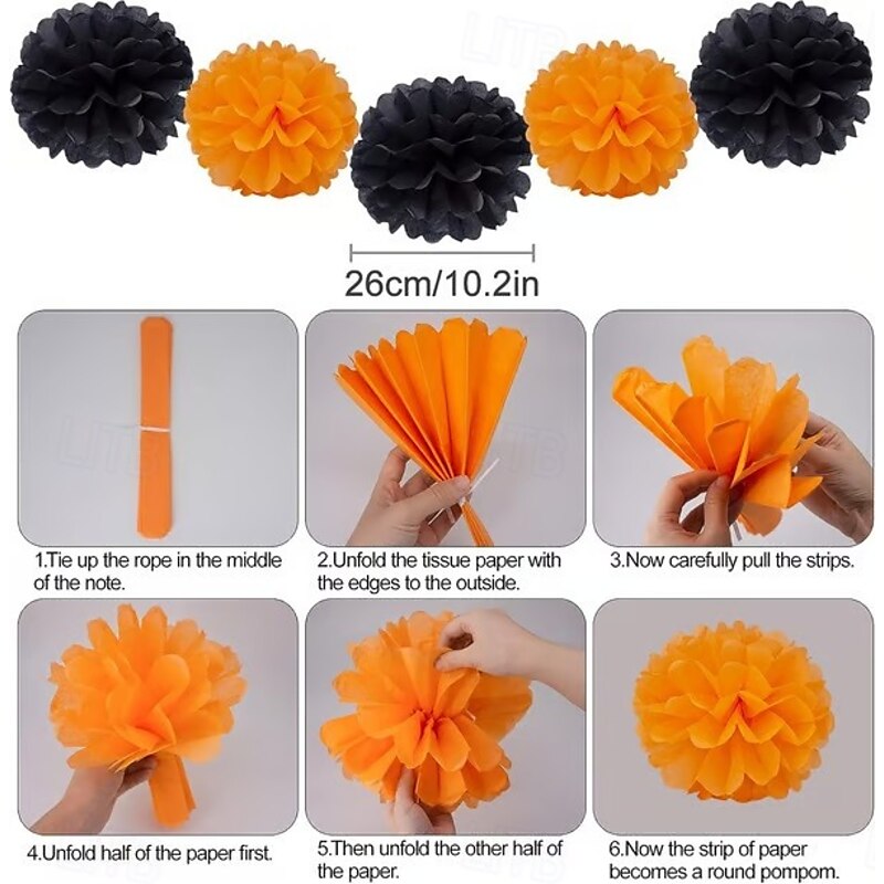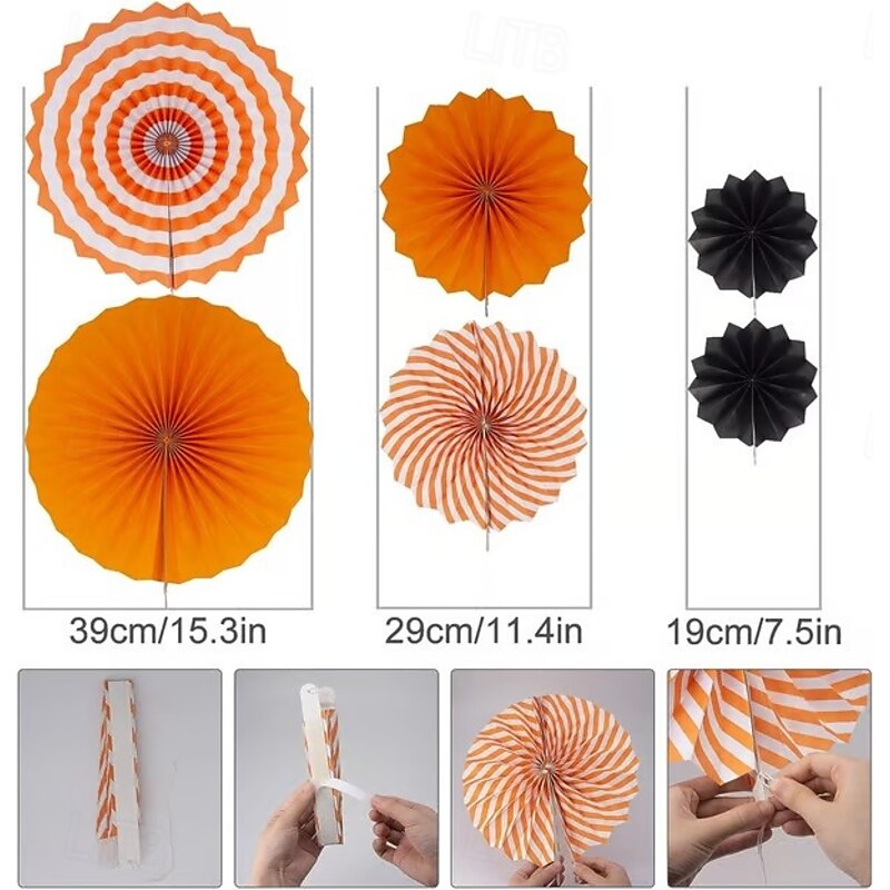 Halloween Party Decoration Holiday Set – Colorful Paper Fans and Tissue Flower Balls Kit, Window Display Hanging Decorations for Halloween, Wedding, Birthday, Festival Banners and Party Backdrops 6