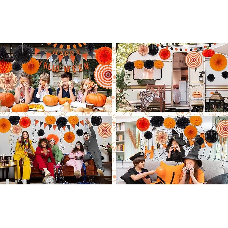 Halloween Party Decoration Holiday Set – Colorful Paper Fans and Tissue Flower Balls Kit, Window Display Hanging Decorations for Halloween, Wedding, Birthday, Festival Banners and Party Backdrops 11
