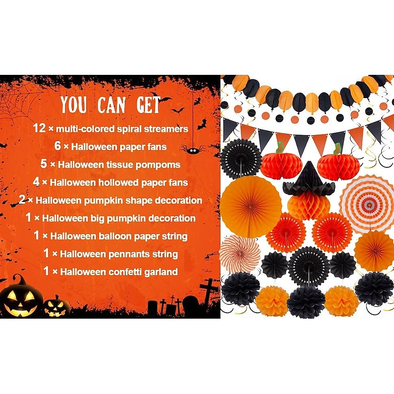 $30.99 - Halloween Party Decoration Holiday Set – Colorful Paper Fans and Tissue Flower Balls Kit, Window Display Hanging Decorations for Halloween, Wedding, Birthday, Festival Banners and Party Backdrops 2025. Shop for cheap Halloween Hanging & Tabletop Decorations online? Buy at lightinthebox.com on sale today!