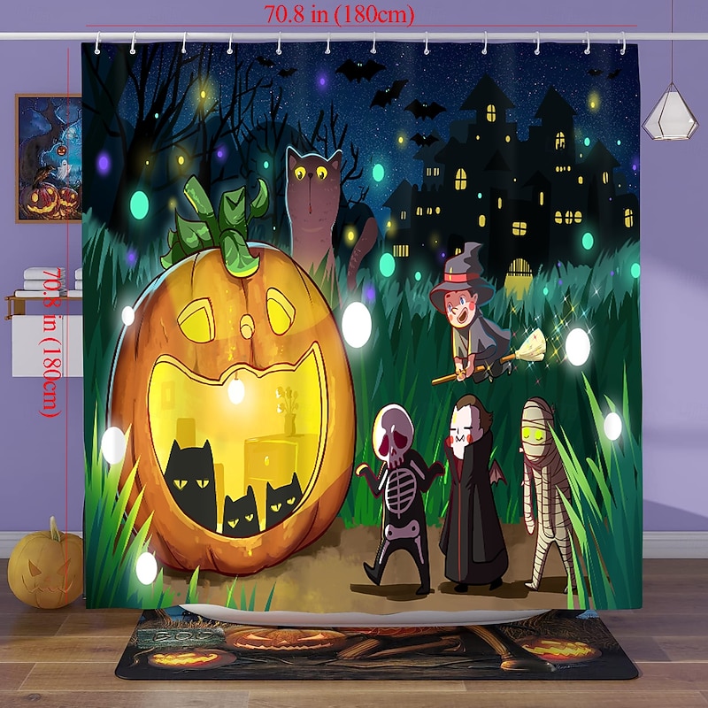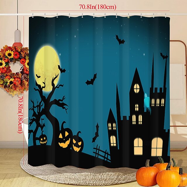 $18.49 - Halloween Shower Curtains Haunted Castle Pumpkin Bats Full Moon Flying Witch Skull Heads Waterproof Polyester Fabric Bathroom Decor Set with 12 Hooks Spooky Horror Holiday Seasonal Decoration 2025. Shop for cheap Halloween Bath online? Buy at lightinthebox.com on sale today!