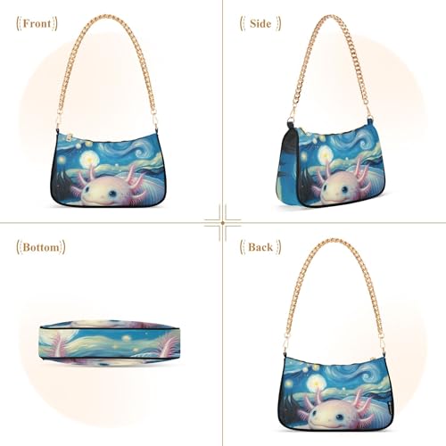 Cute Axolotl Starry Night Funny Medium Handbag Tote Womens Ladies Shoulder Bag Floral Zipper Casual Hobo Purse with Chain Strap